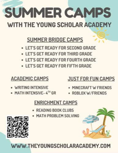 The Young Scholar Academy offers small-group summer classes for rising 2nd–5th graders, as well as targeted programs like: